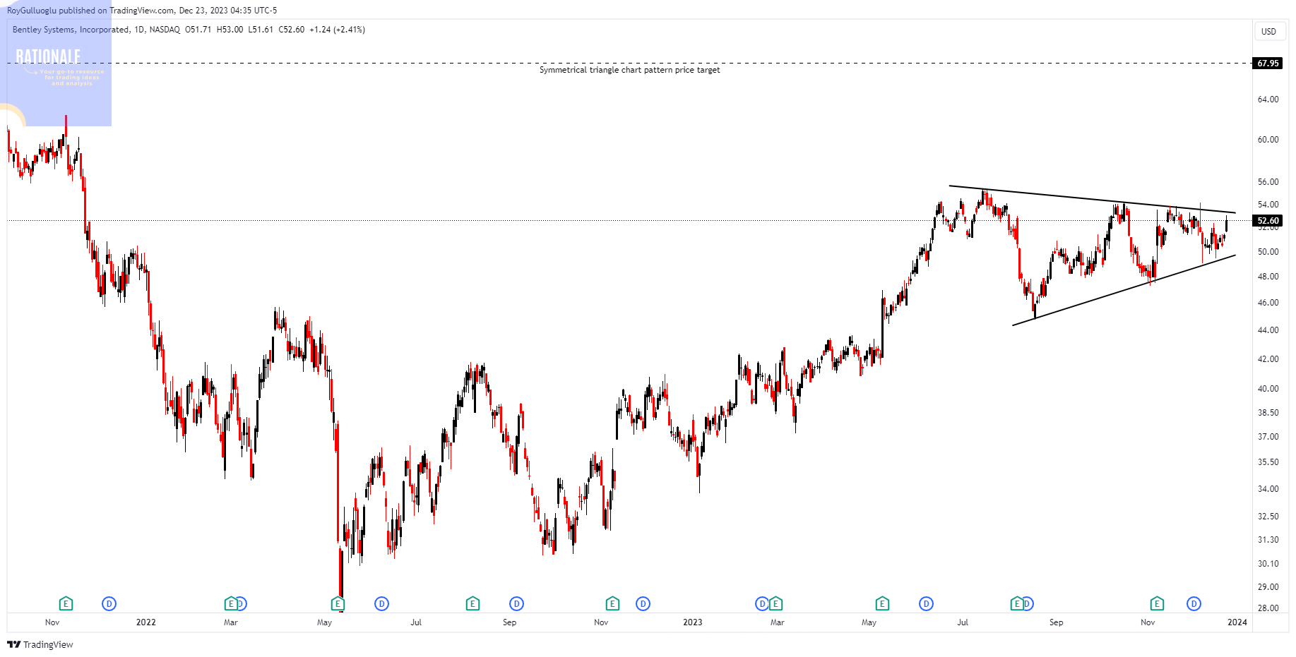 Based on this chart pattern, the potential price target is 56.3 levels.