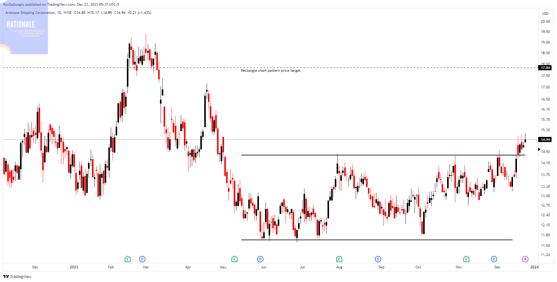 The above weekly chart formed an approximately 15-month-long rectangle chart pattern.