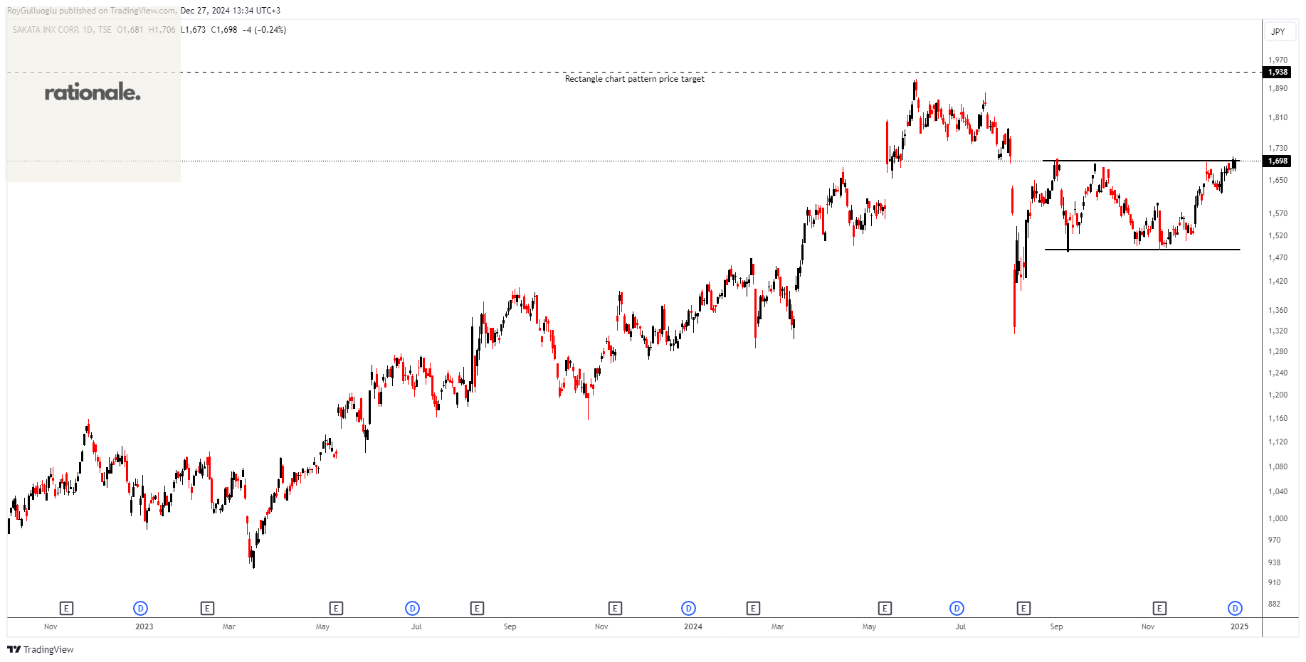The above daily chart formed an approximately 7-month-long rectangle chart pattern as a bullish continuation after an uptrend.
