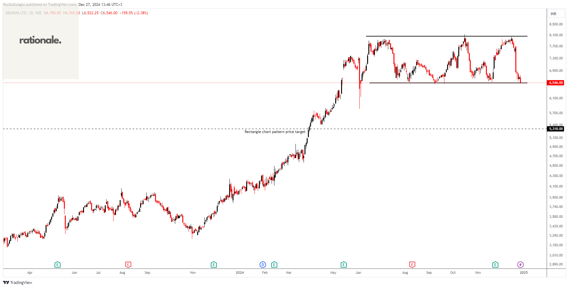 A daily close below 6343 levels would validate the breakout from the 4-month-long rectangle chart pattern.