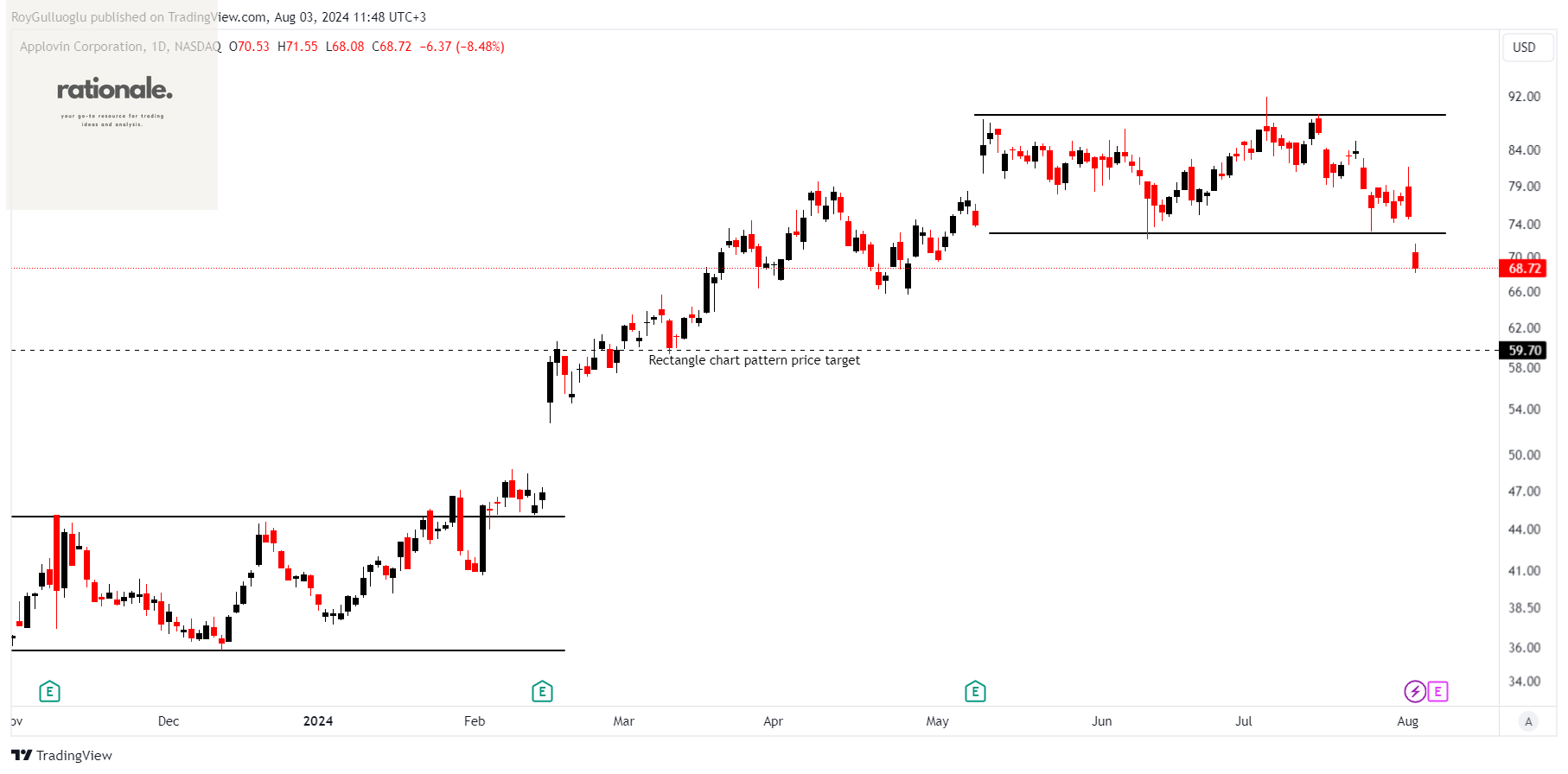 The above daily chart formed an approximately 2-month-long rectangle chart pattern as a bullish reversal after an uptrend.