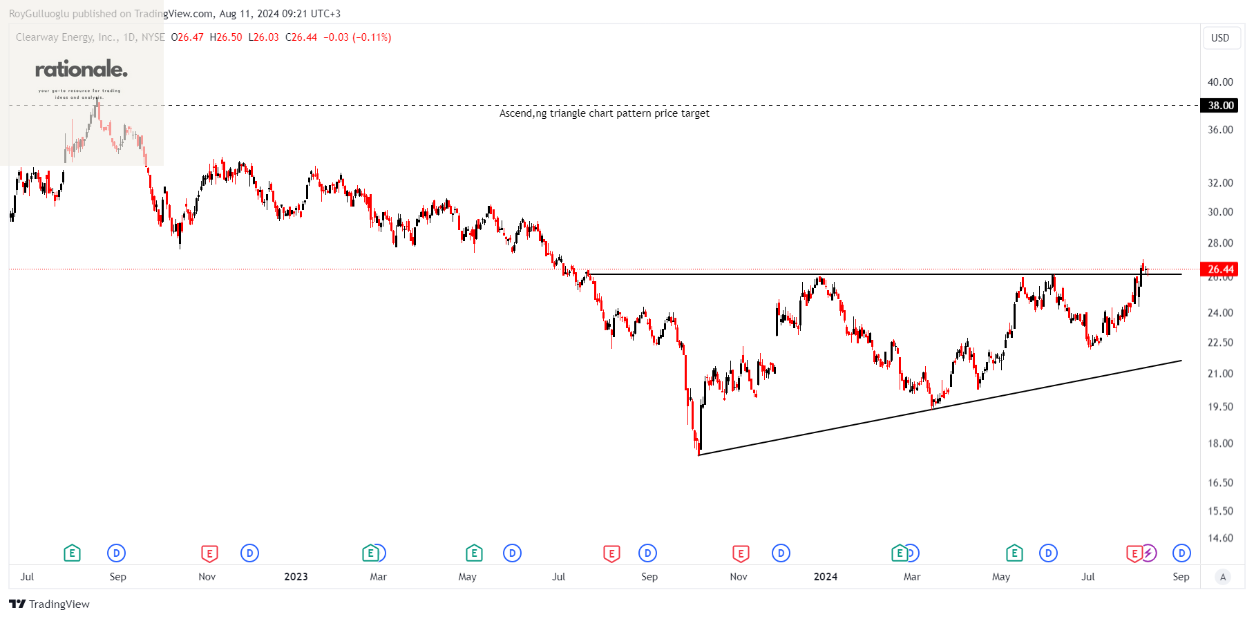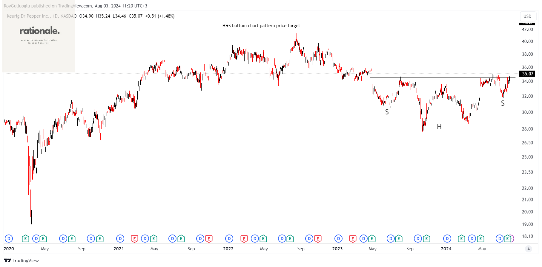 Based on this chart pattern, the potential price target is 38 levels.