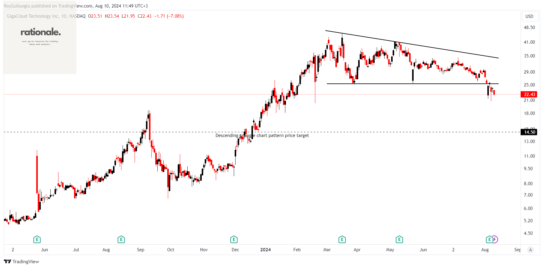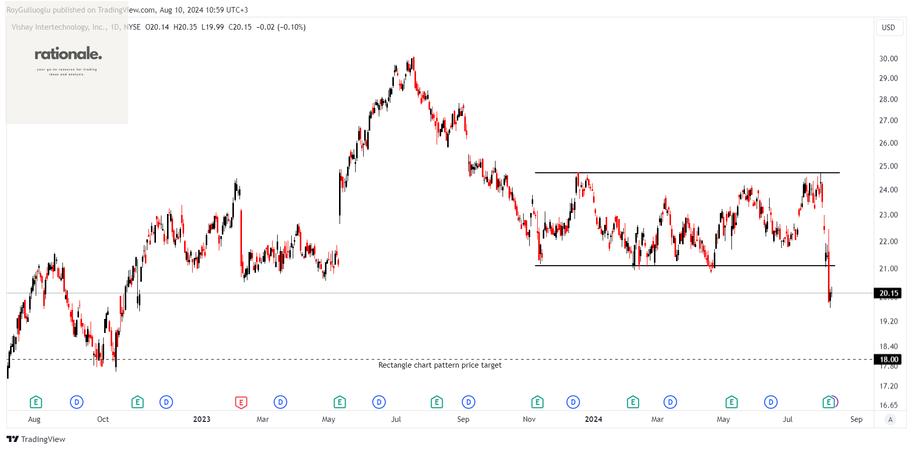 A daily close below 24.28 levels validated the breakdown from the 6-month-long rectangle chart pattern.