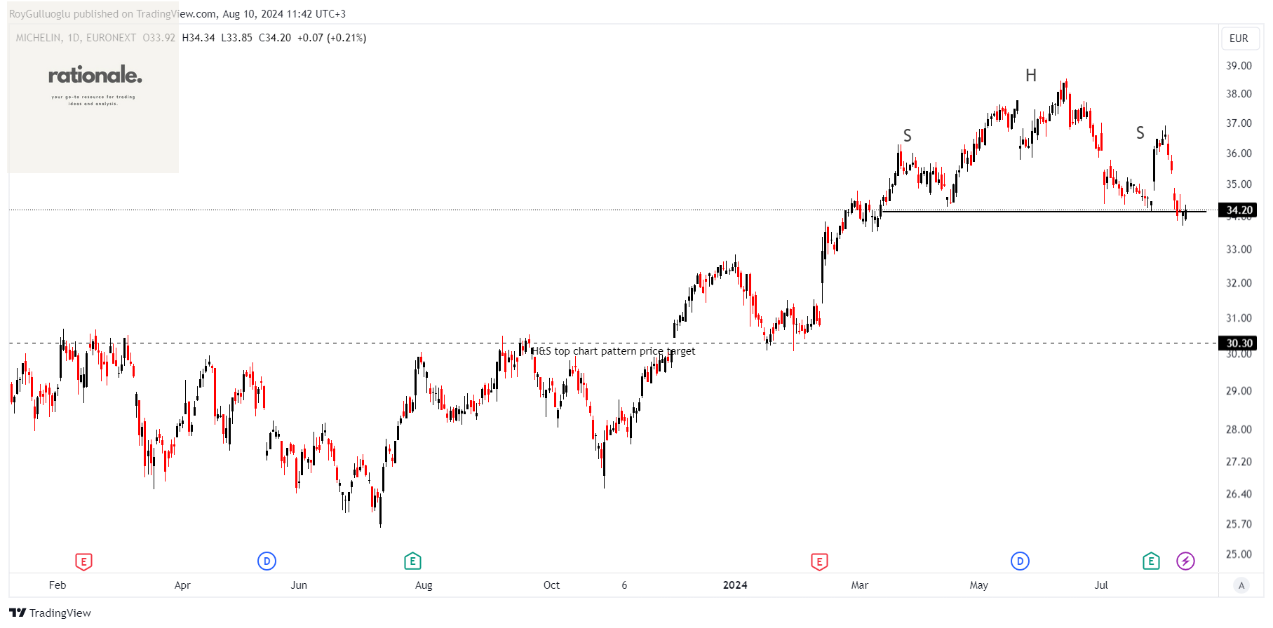 A daily close below 33.12 levels would validate the breakdown from the 3-month-long H&S top chart pattern.