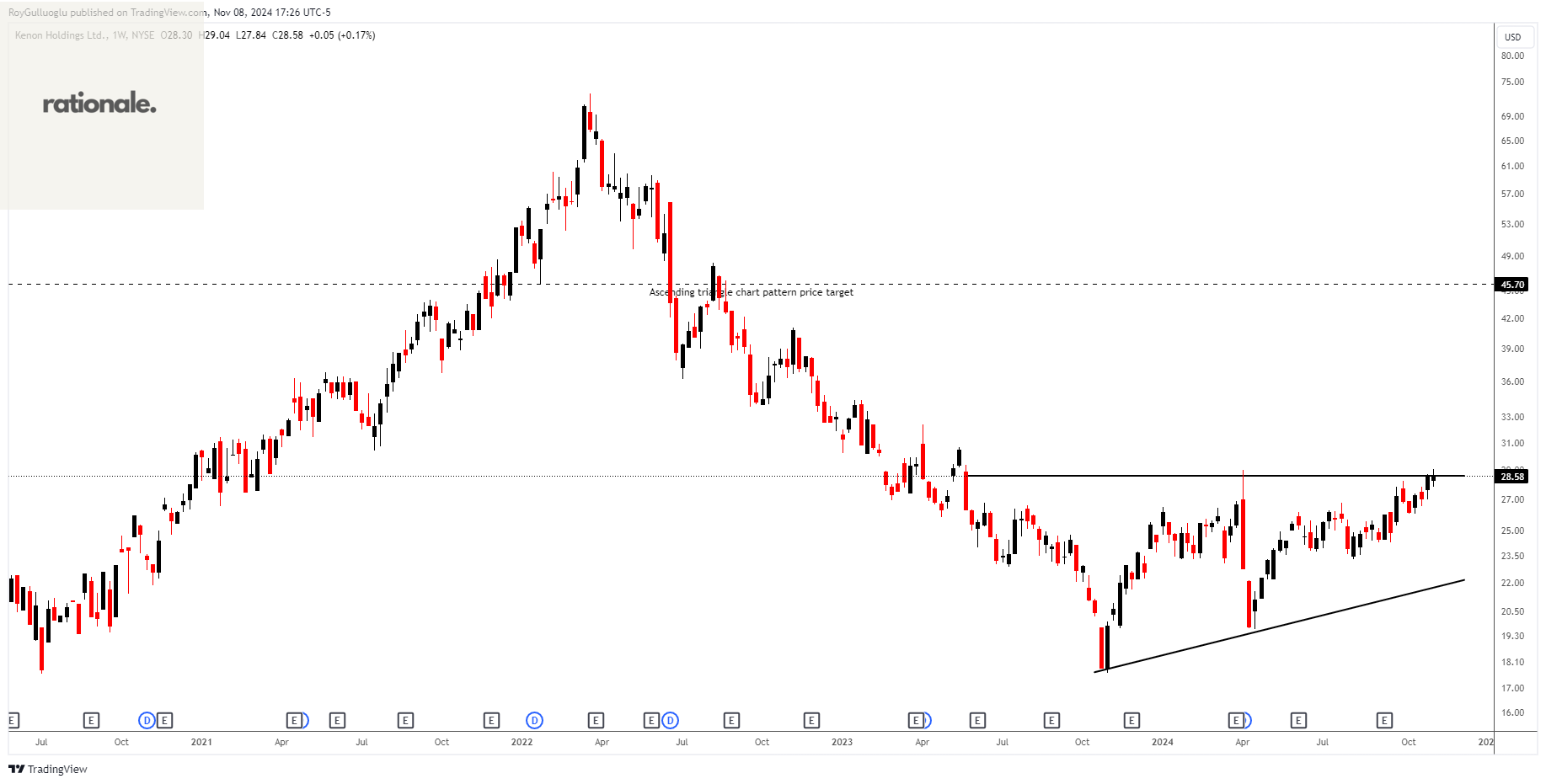 The above weekly chart formed an approximately 18-month-long ascending triangle chart pattern as a bullish reversal after a downtrend.