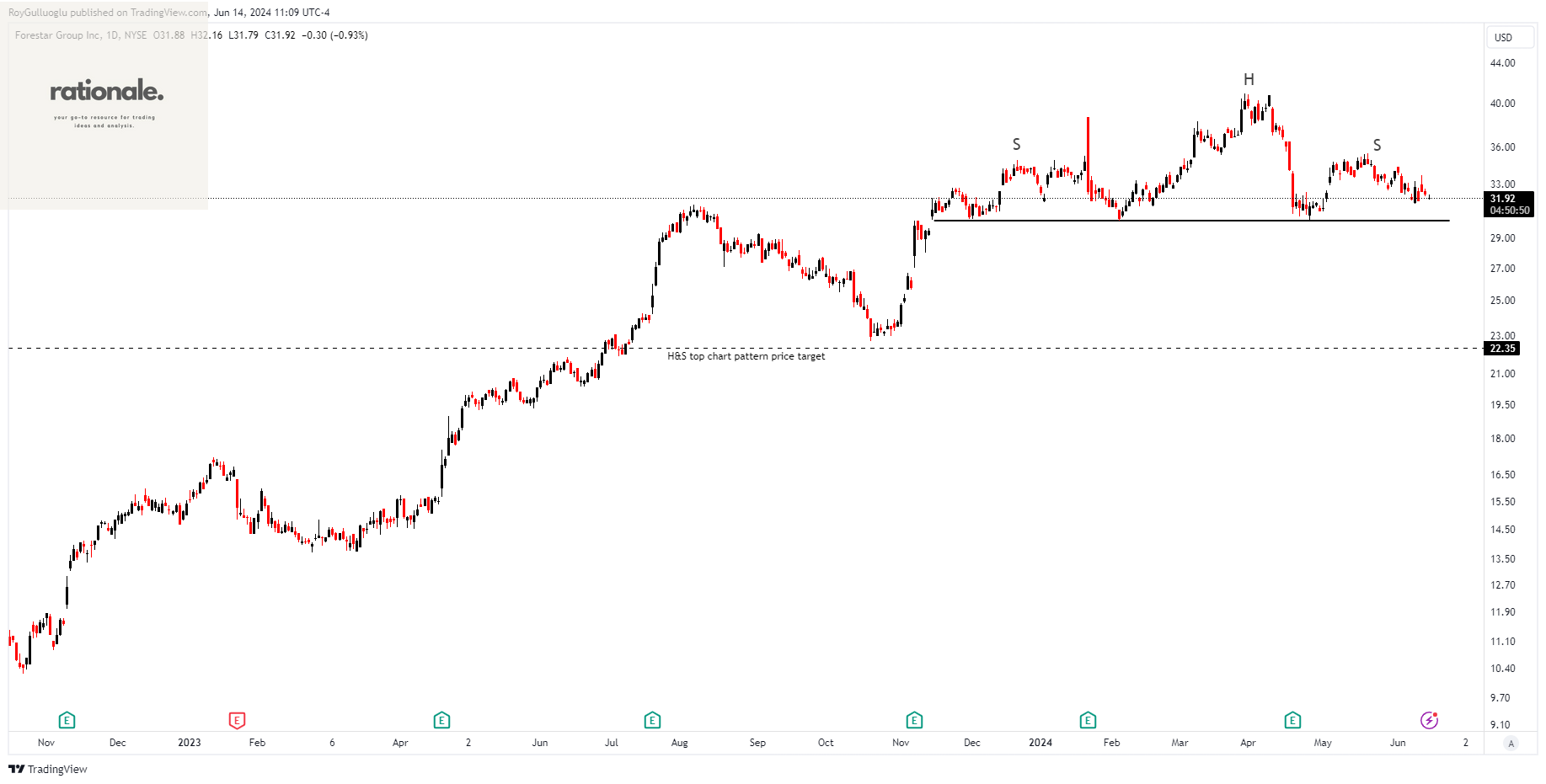 A daily close below 29.35 levels would validate the breakdown from the 5-month-long H&S top chart pattern.