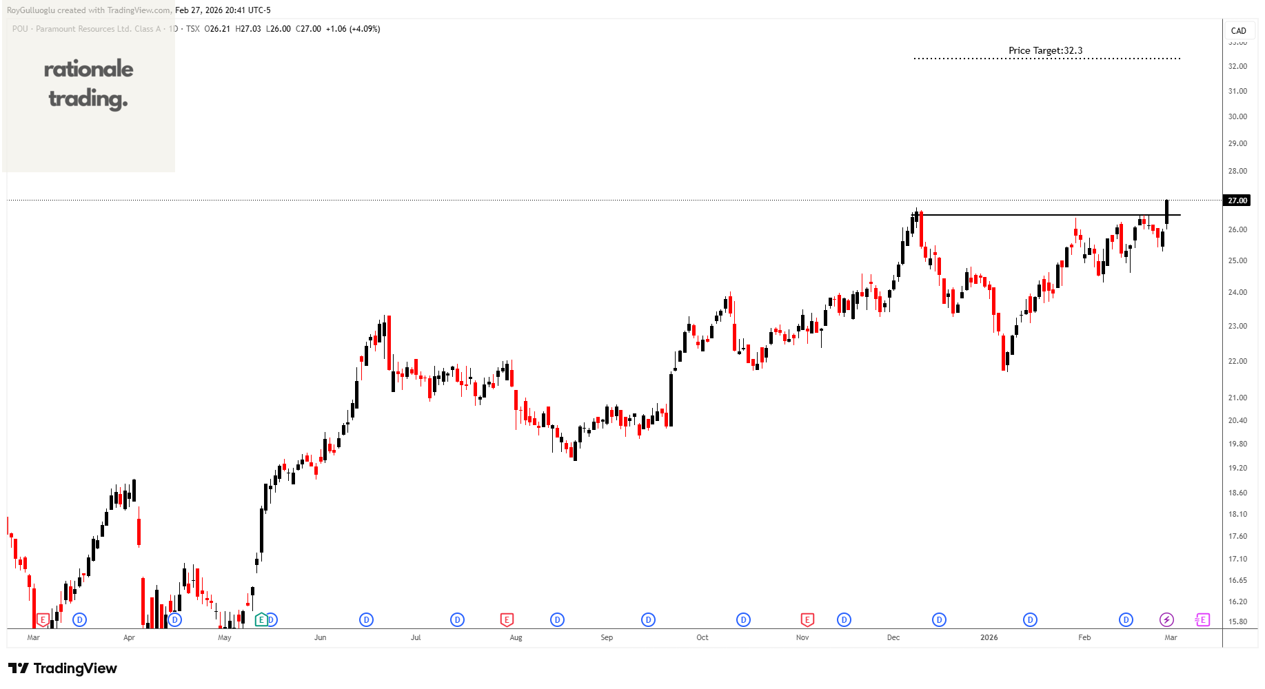 Based on this chart pattern, the potential price target is 25.85 levels.