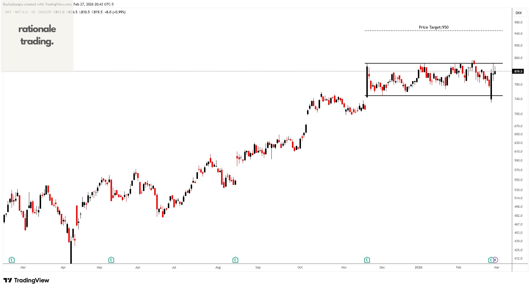 Based on this chart pattern, the potential price target is 950 levels.