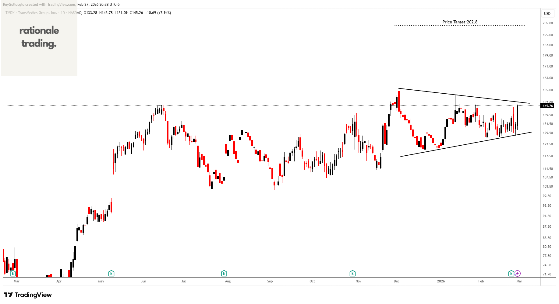 Based on this chart pattern, the potential price target is 214.5 levels.
