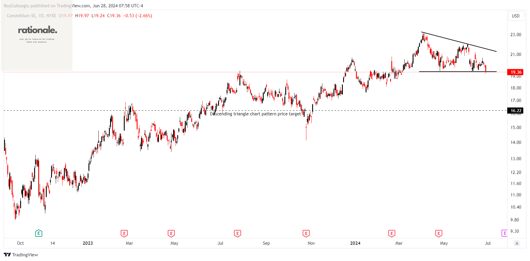 A daily close above 18.78 levels would validate the breakdown from the 2-month-long descending triangle chart pattern.
