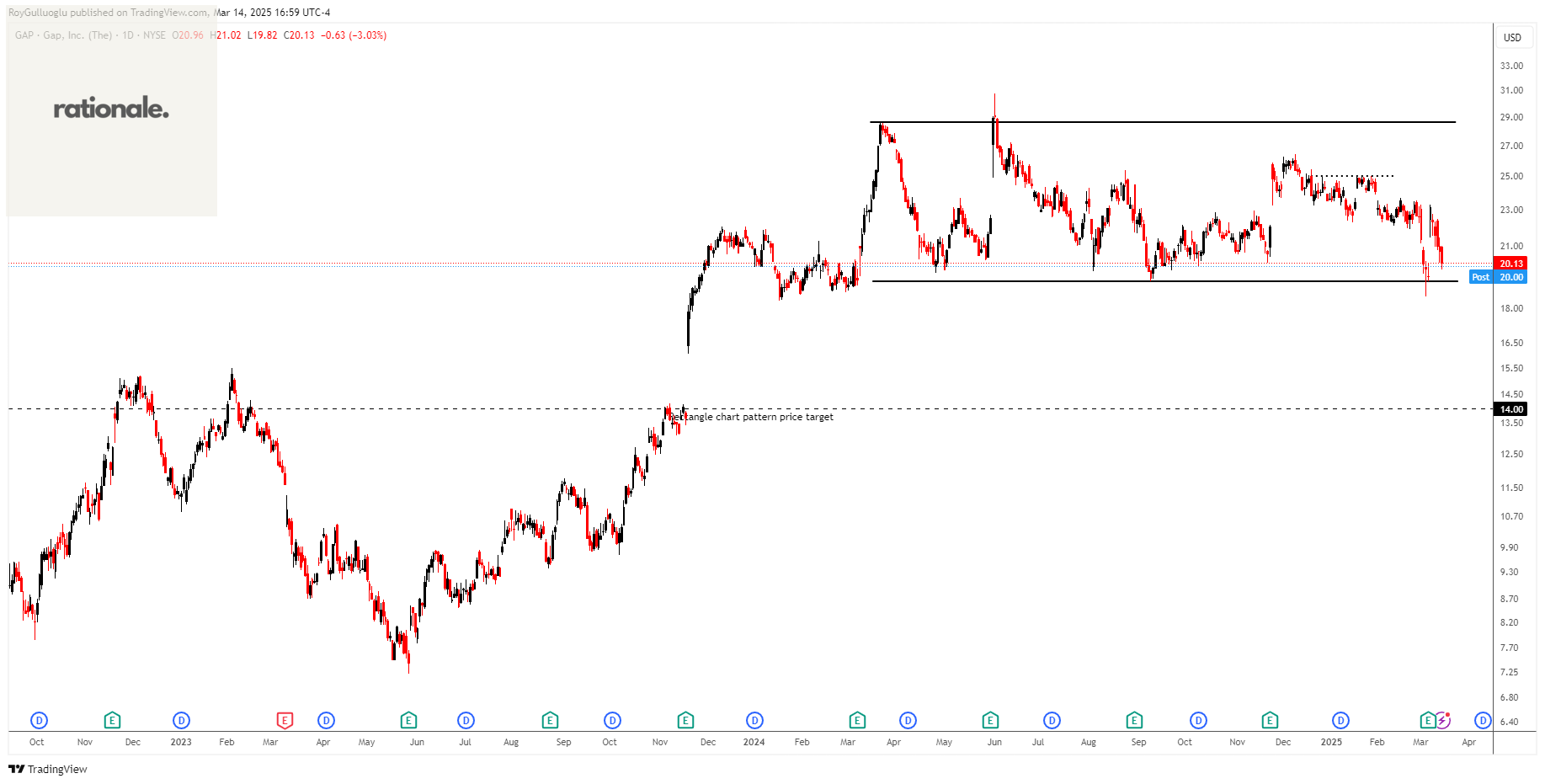 Based on this chart pattern, the potential price target is 14 levels.