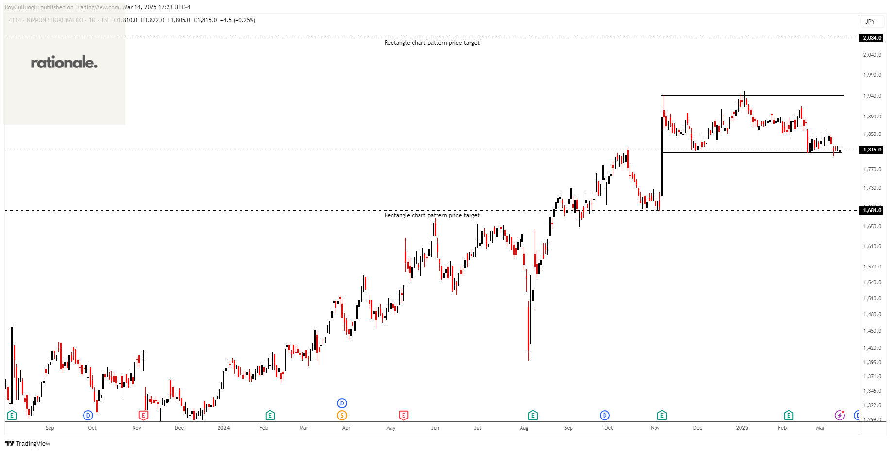 The above daily chart formed an approximately 3-month-long rectangle chart pattern as a bullish continuation after an uptrend.