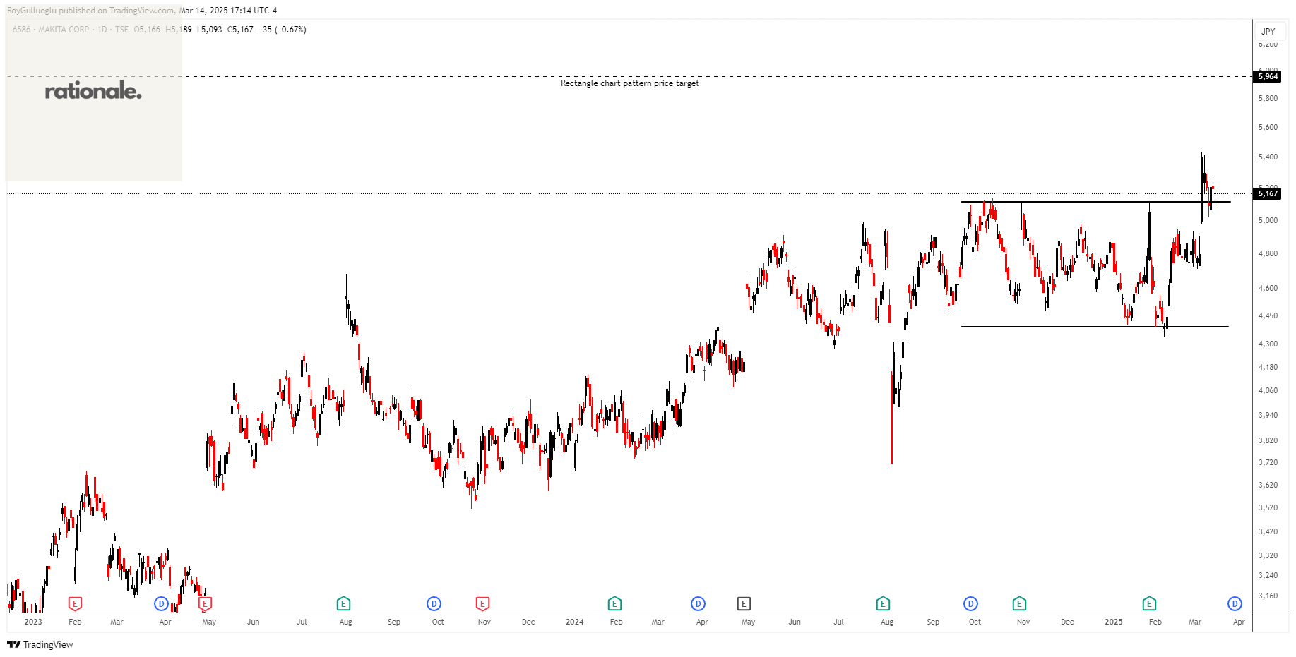 The above daily chart formed an approximately 8-month-long rectangle chart pattern as a bullish reversal after an uptrend.
