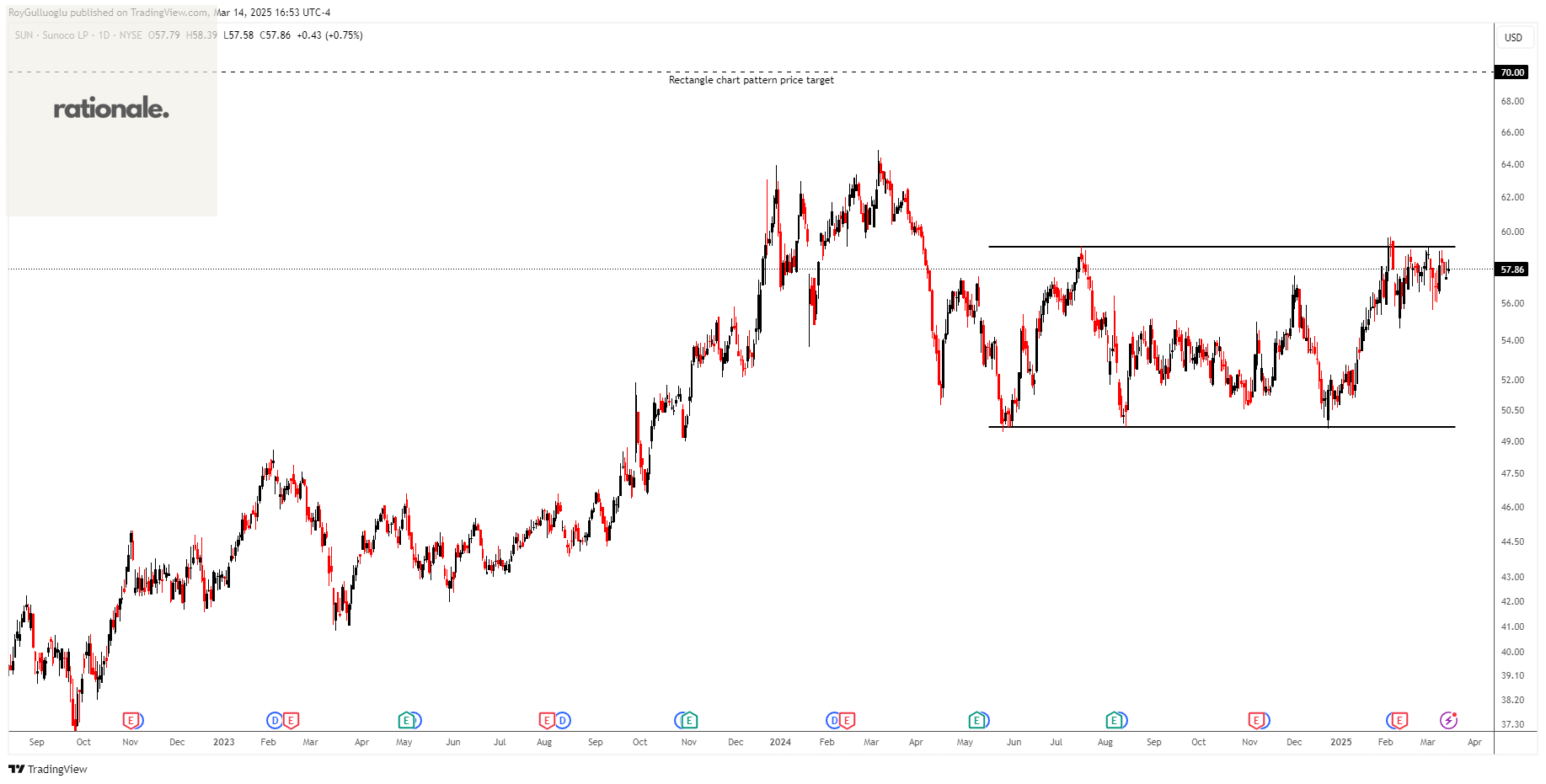 Based on this chart pattern, the potential price target is 70 levels.