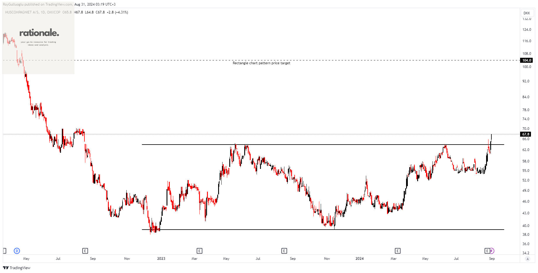 A daily close above 65.71 levels validated the breakout from the 14-month-long rectangle chart pattern.