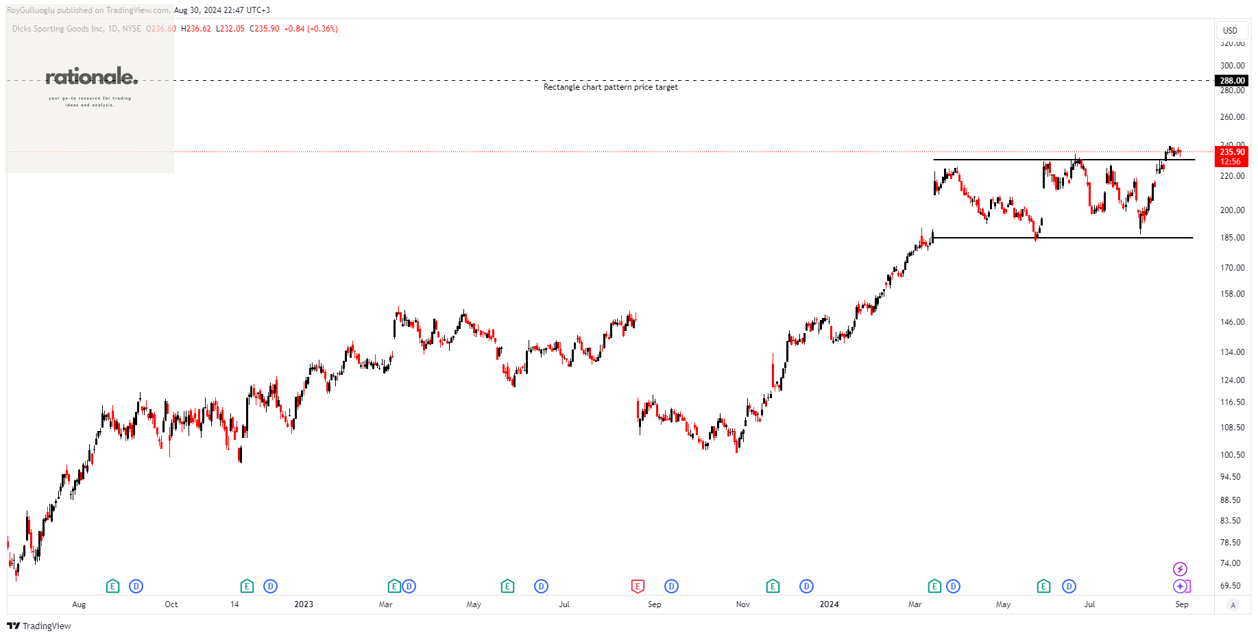A daily close above 237.23 levels validated the breakout from the 3-month-long rectangle chart pattern.