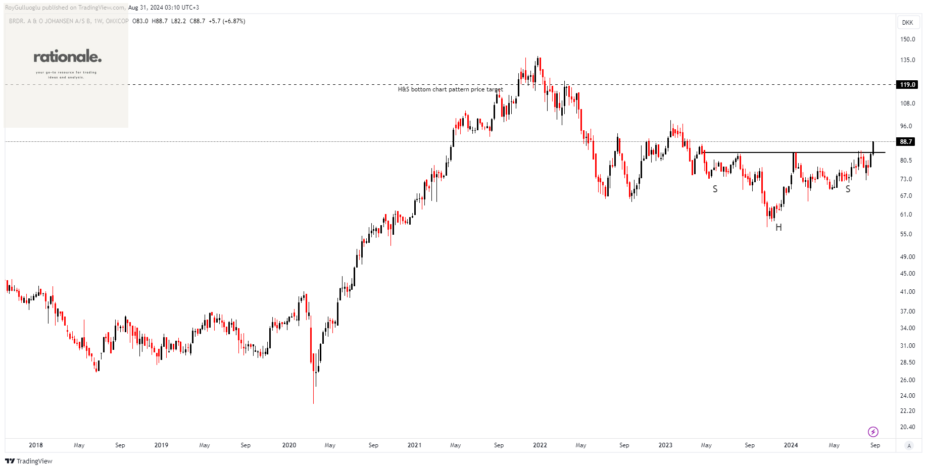The above weekly chart formed an approximately 17-month-long H&S bottom chart pattern as a bullish reversal after a downtrend.