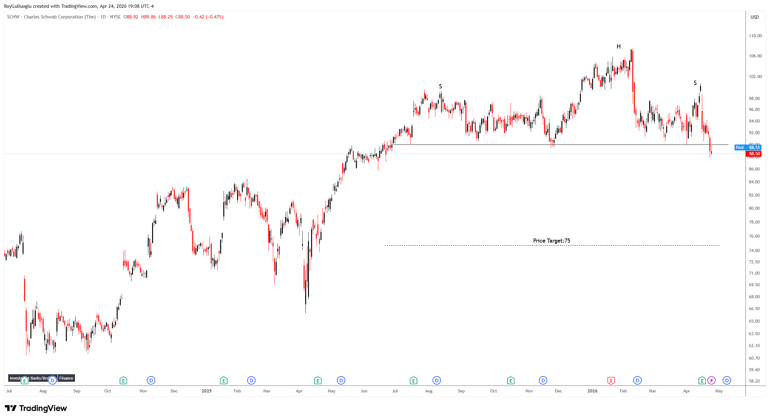 Based on this chart pattern, the potential price target is 75 levels.