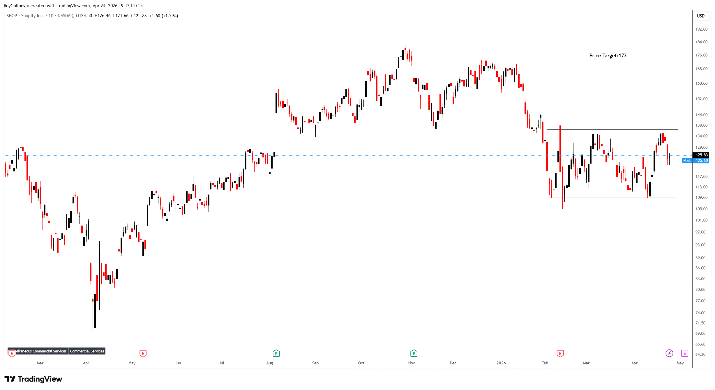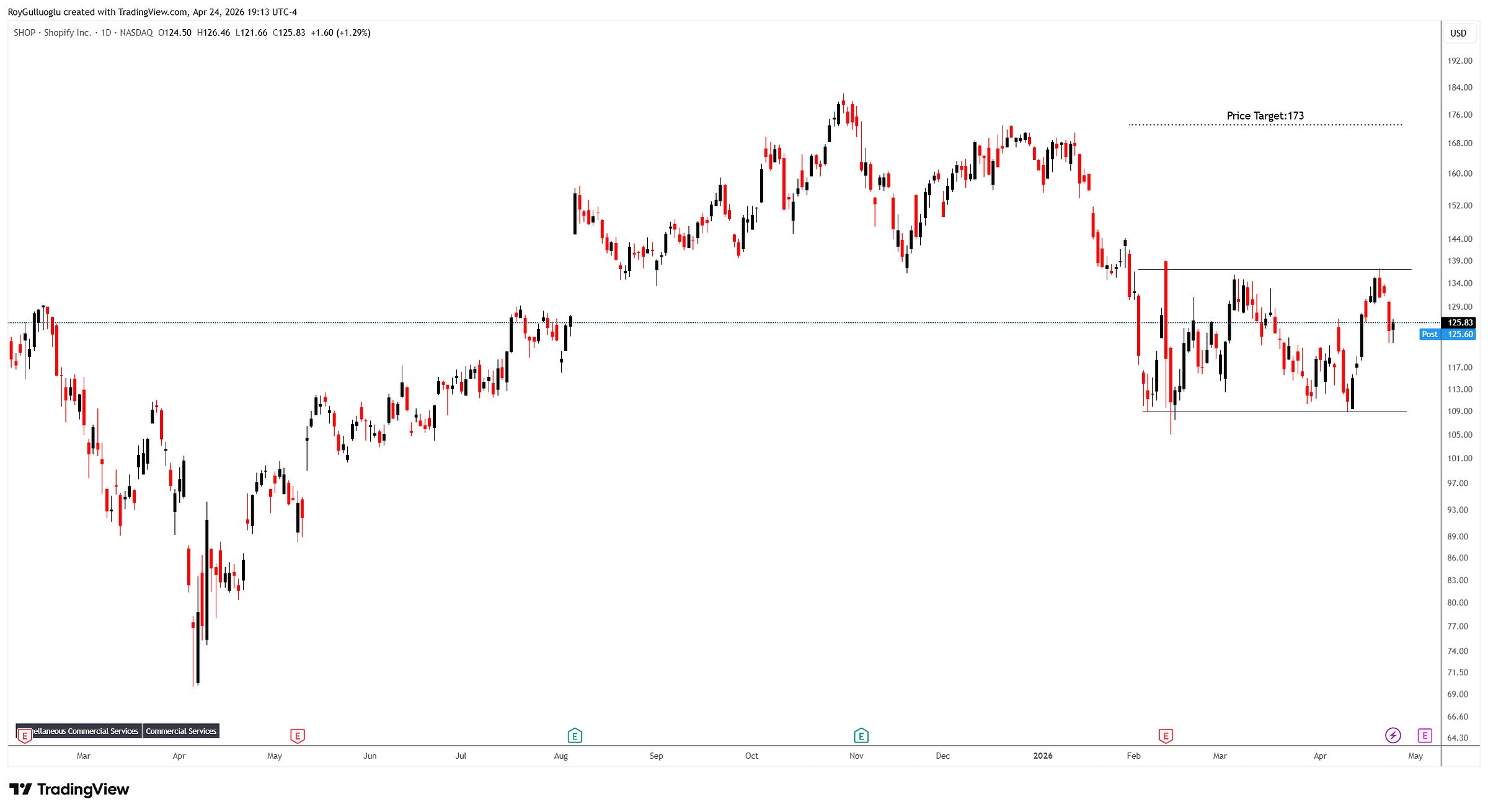 Based on this chart pattern, the potential price target is 173 levels.