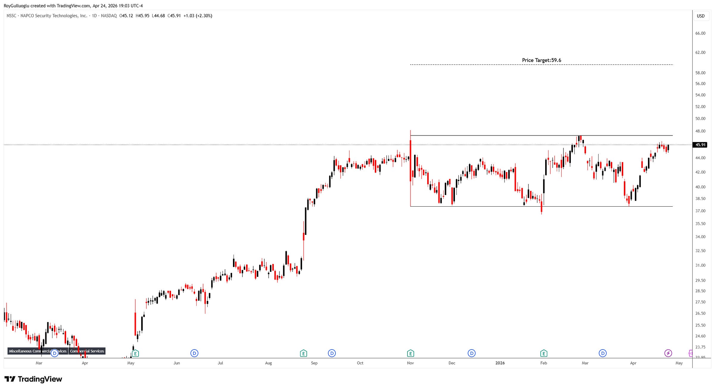 Based on this chart pattern, the potential price target is 59 levels.