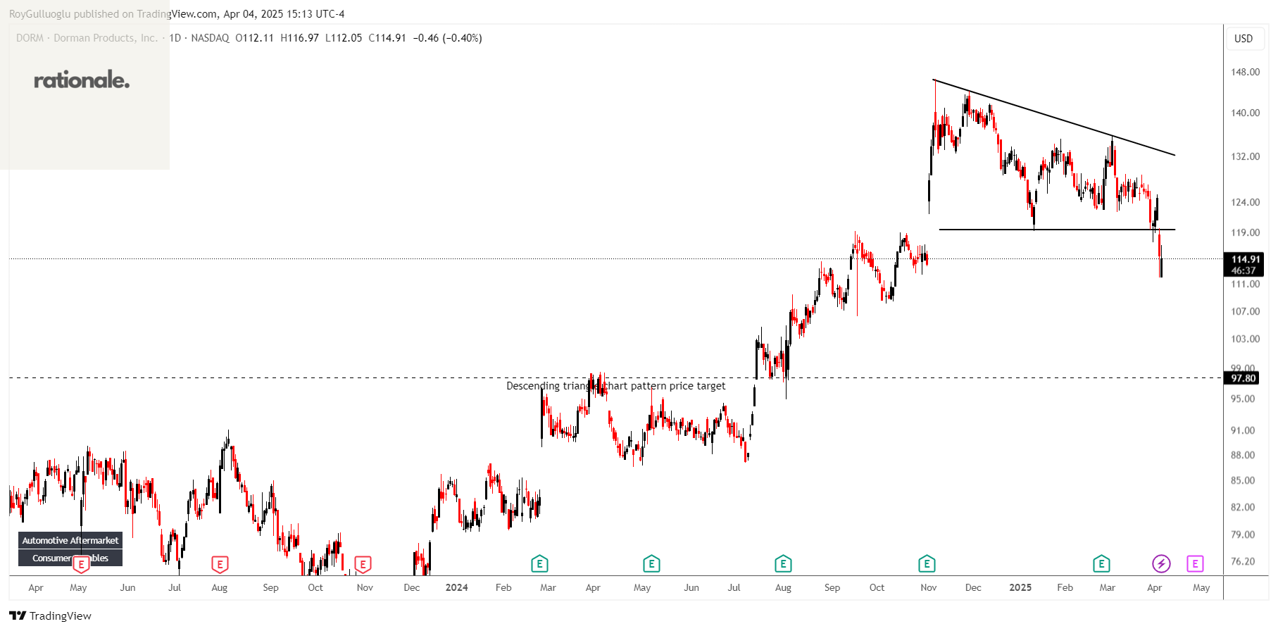 With technical breakdown confirming broader weakness, DORM may underperform if sentiment continues to shift away from growth-oriented cyclicals.