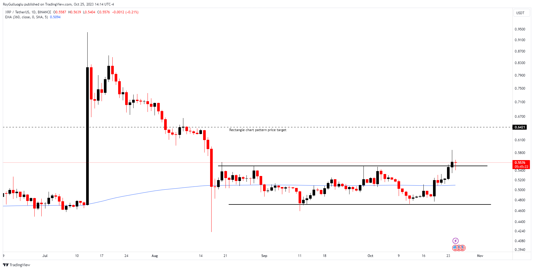 The above daily chart formed an approximately 1.5-month-long rectangle chart pattern as a bullish reversal after a downtrend.