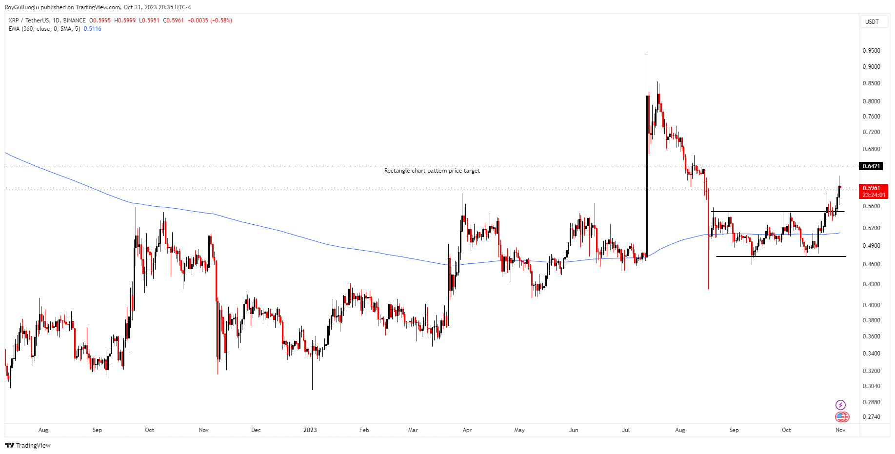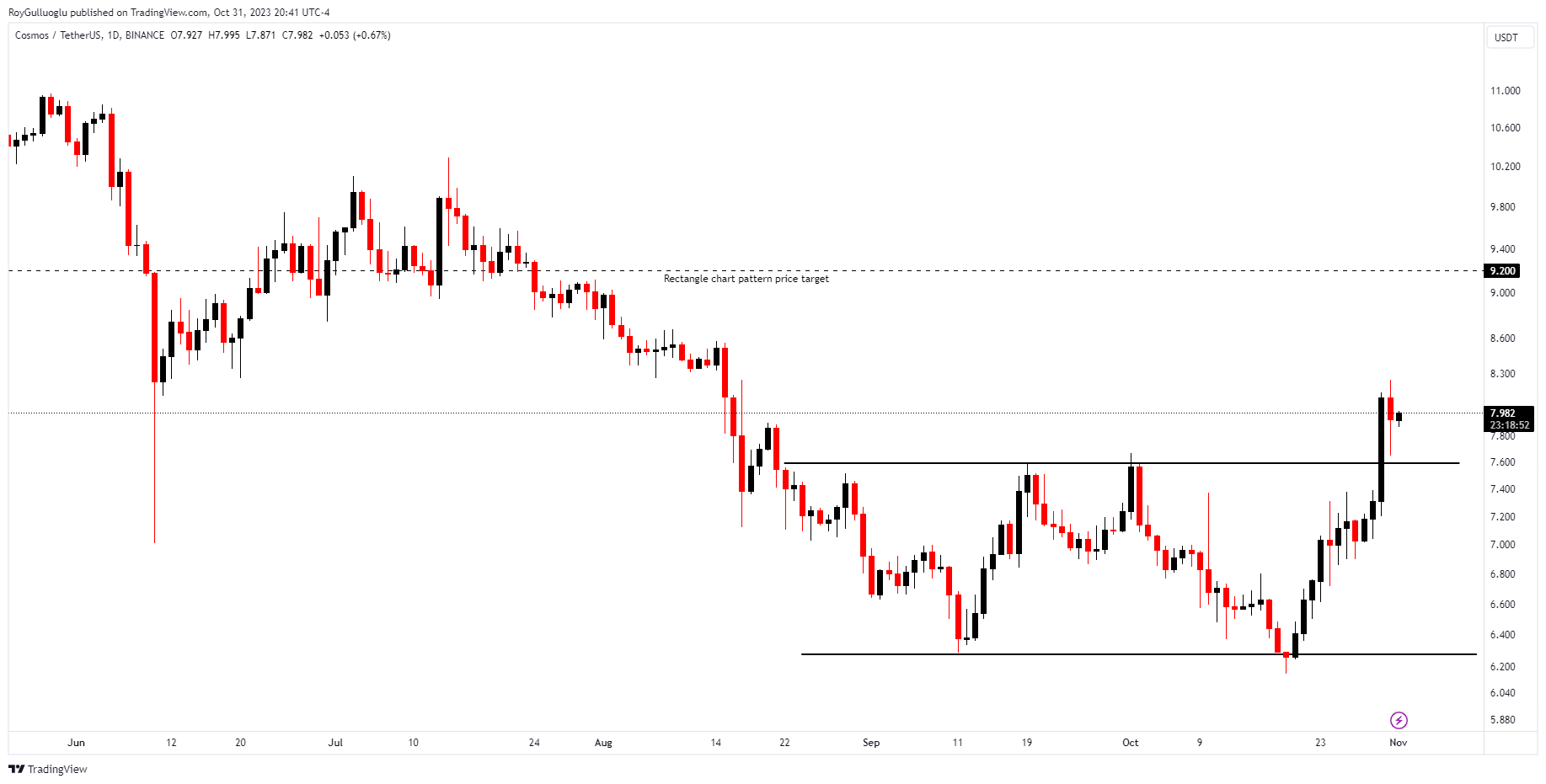 A daily close above 7.8177 levels validated the breakout from the 2-month-long rectangle chart pattern.