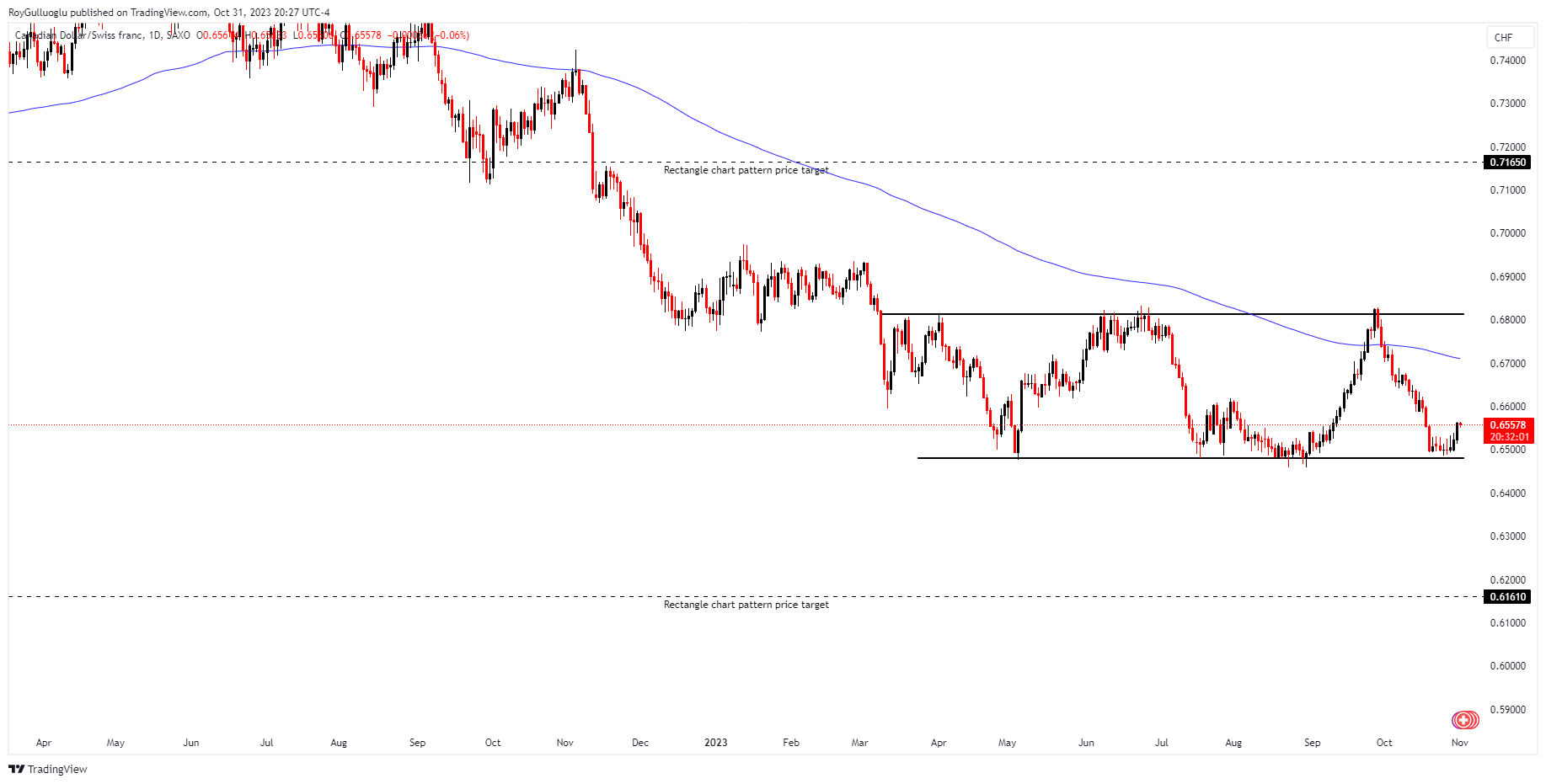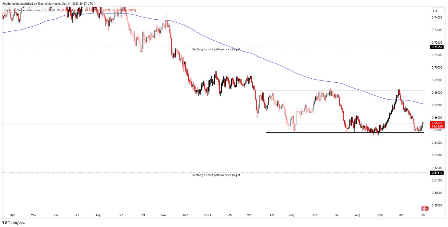 In conclusion, although I find the technical view of CAD/CHF appealing, it's important to stress the significance of considering these fundamental factors and monitoring geopolitical developments closely. These factors could greatly influence the currency pair's performance.