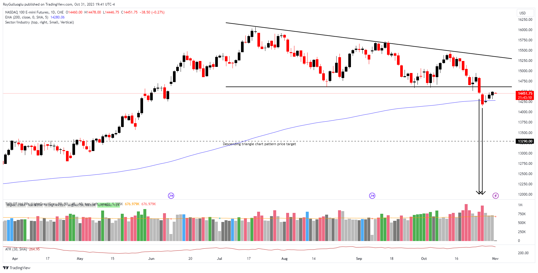 We have seen 2 daily close below the 200-day EMA also as you can see in the attached graph the selling volumes of those two days are higher than the 50-day average volume.