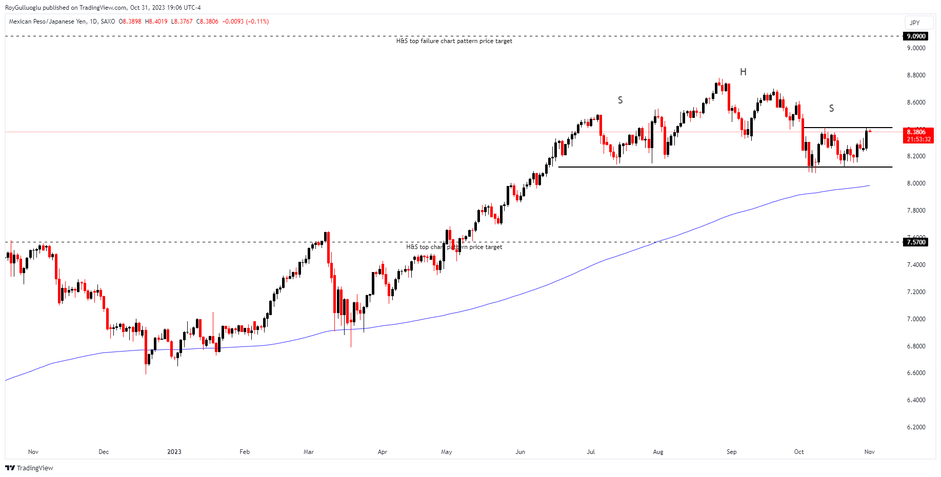 A daily close above 8.4941 levels would validate the breakout from the 3-month-H&S top chart pattern failure scenario.