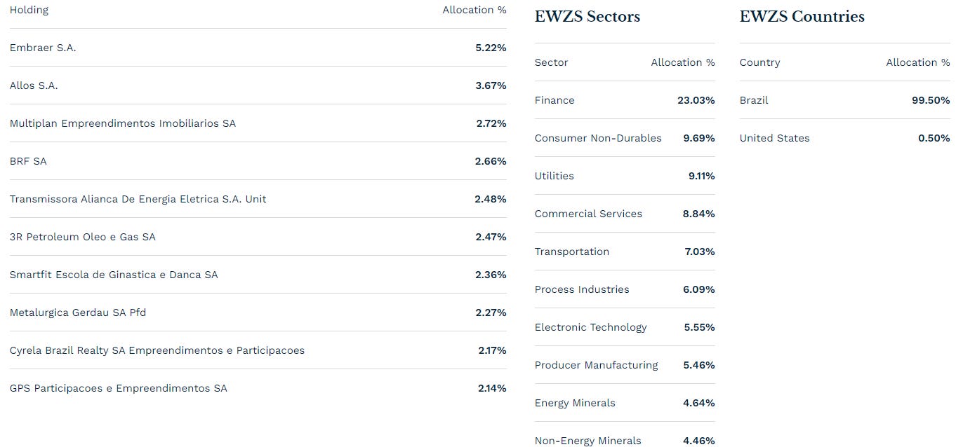 EWZS is essentially a bet on the sectors that dominate the Brazilian small-cap market. That being said, it still invests in a variety of different sectors, giving it a broader classification.