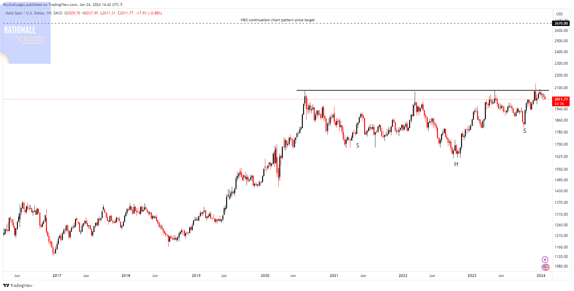 The above weekly chart formed an approximately 45-month-long H&S continuation chart pattern.