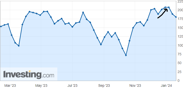 As you can see in the above cftc gold non-commercial net positions chart, the arrow shows the uptrend of the speculative positioning starting from October 2023 which supports the recent strength of the gold.