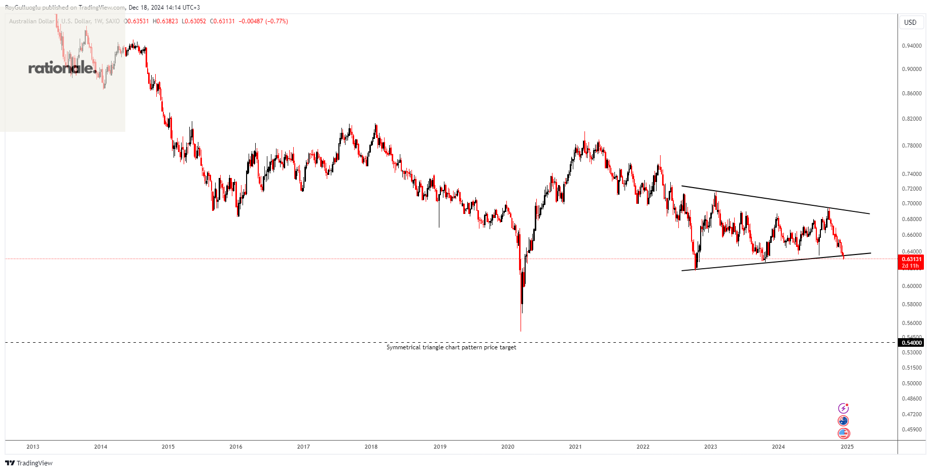 A daily close below 0.628 levels would validate the breakdown from the 29-month-long symmetrical triangle chart pattern.