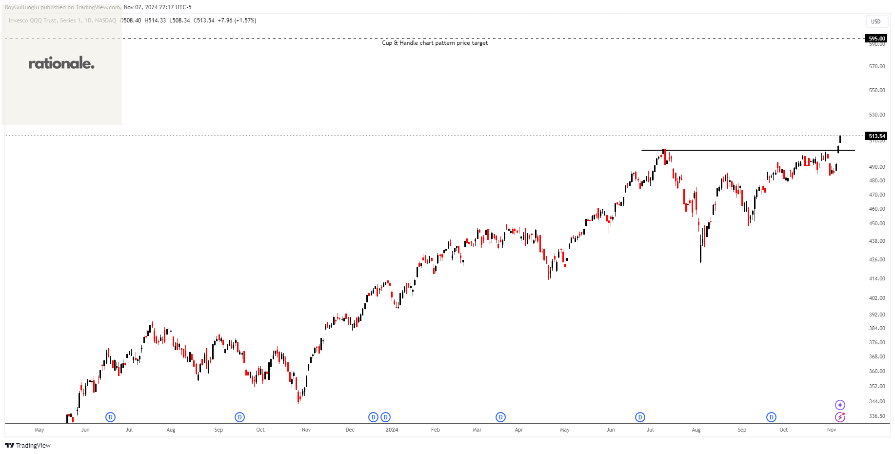 Based on this chart pattern, the potential price target is 595 levels.