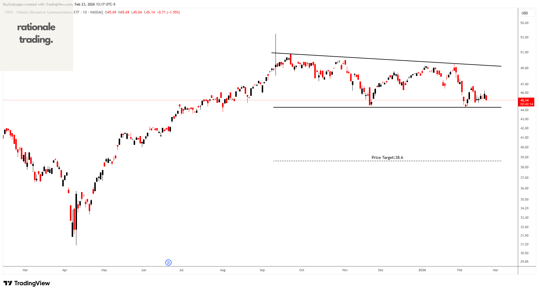 Based on this chart pattern, the potential price target is approximately 38.6 levels.