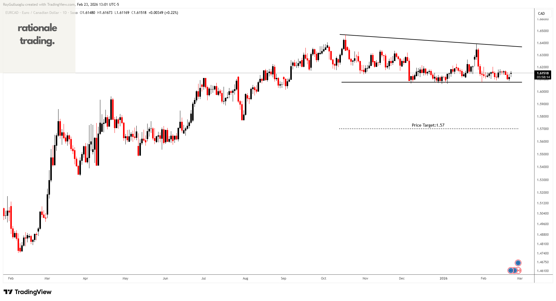 Based on this chart pattern, the potential price target is approximately 1.57 levels.