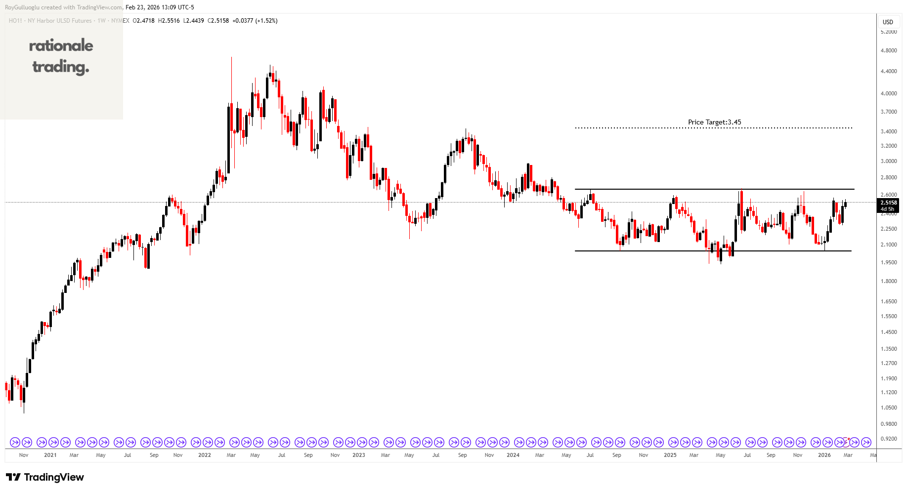 Based on this chart pattern, the potential price target is approximately 3.45 levels.