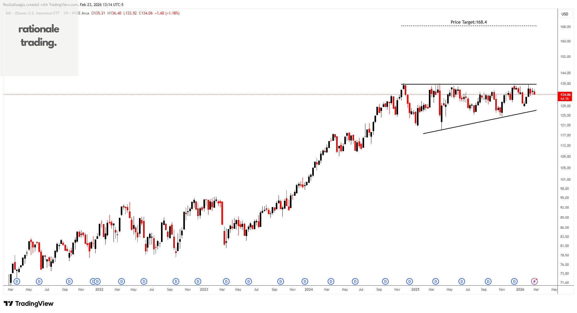 Based on this chart pattern, the potential price target is approximately 168.4 levels.