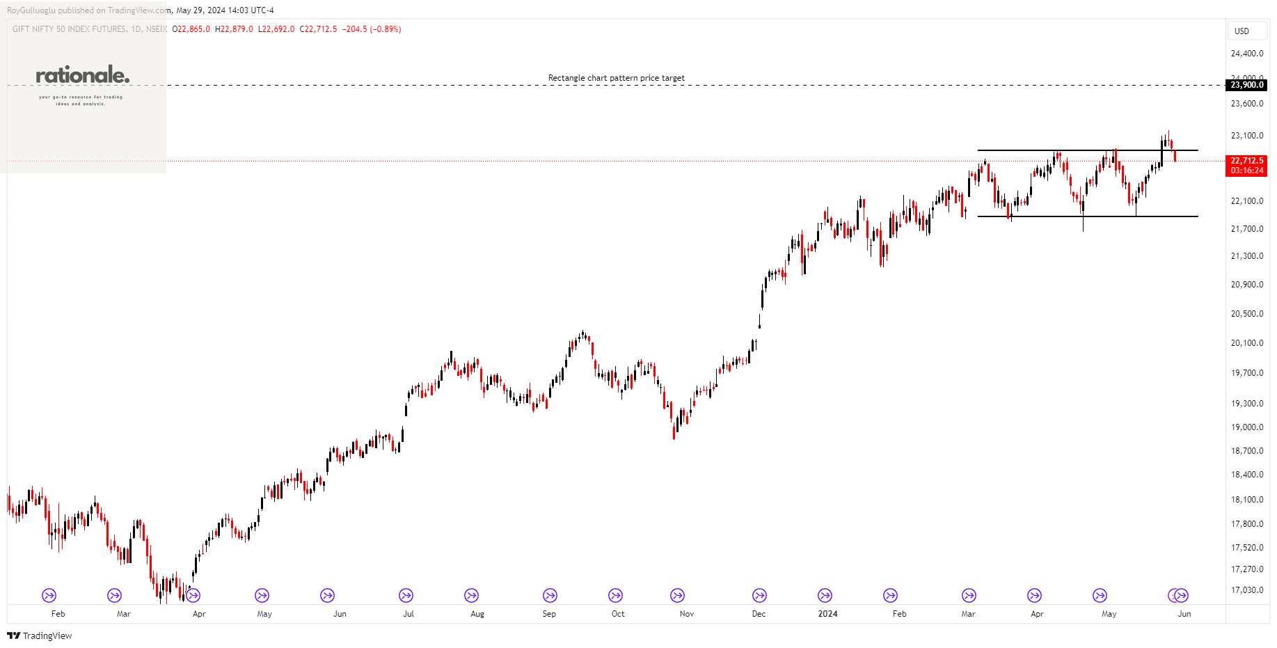 A daily close above 23100 levels would validate the breakout from the -month-long rectangle chart pattern.