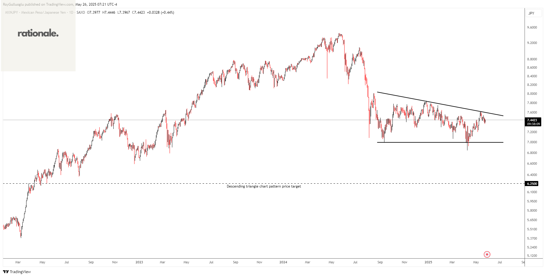 A daily close below 6.9247 levels would validate the breakout from the 6-month-long descending triangle chart pattern.