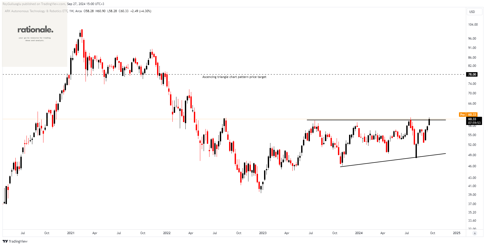 Within this pattern, the horizontal boundary at 60 levels acts as a resistance.