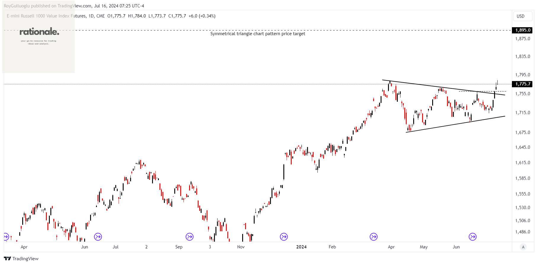 A daily close above 1777(%1 high of the resistance for FX, Futures) levels would validate the breakout from the symmetrical triangle chart pattern.