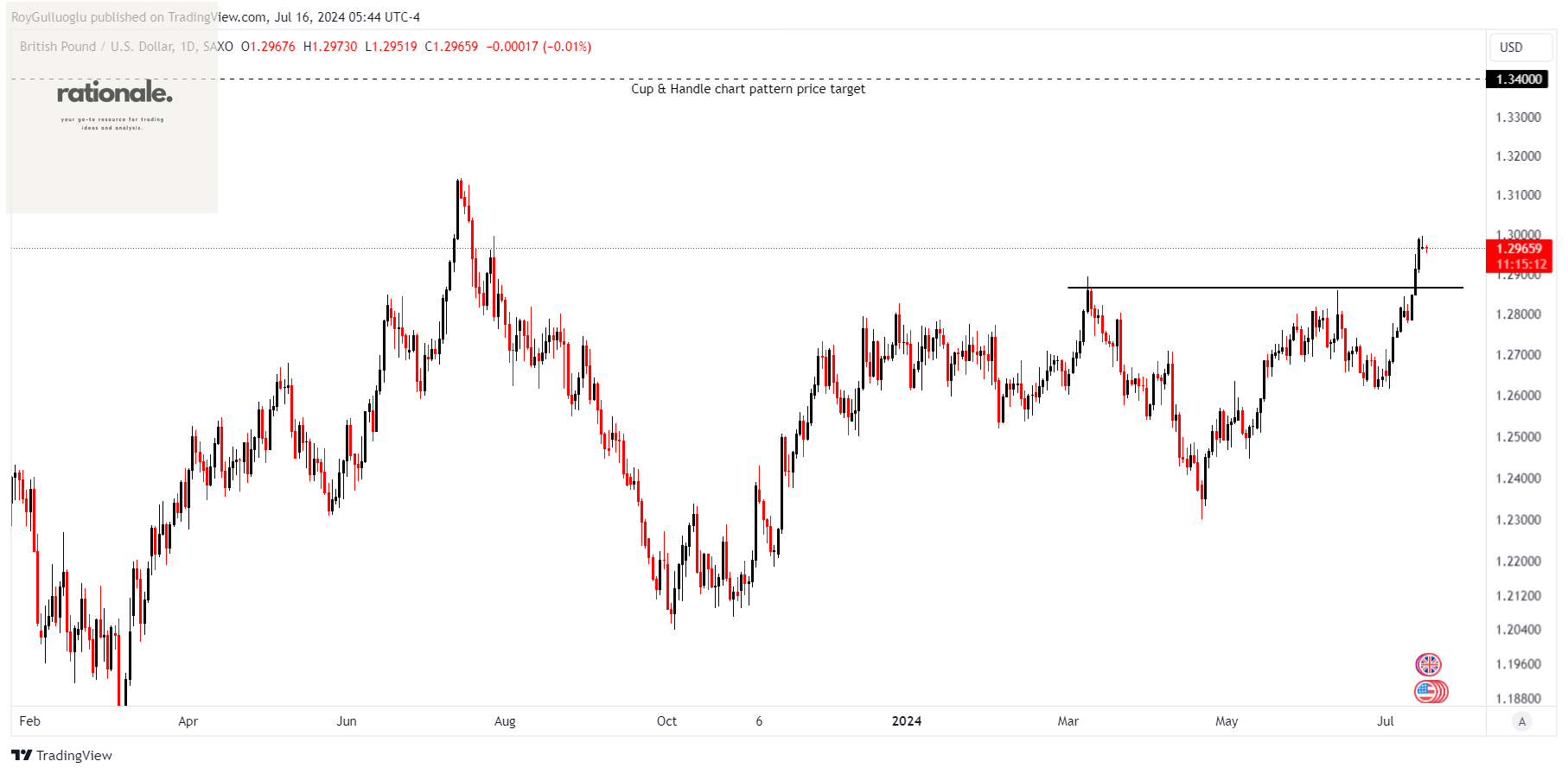 A daily close above 1.298 levels (%1 high of the resistance for FX, Futures) validated the breakout from the 3-month-long cup & handle chart pattern.