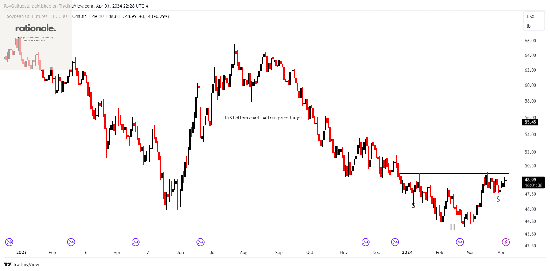 A daily close above 51 levels would validate the breakout from the 2-month-long H&S bottom chart pattern.