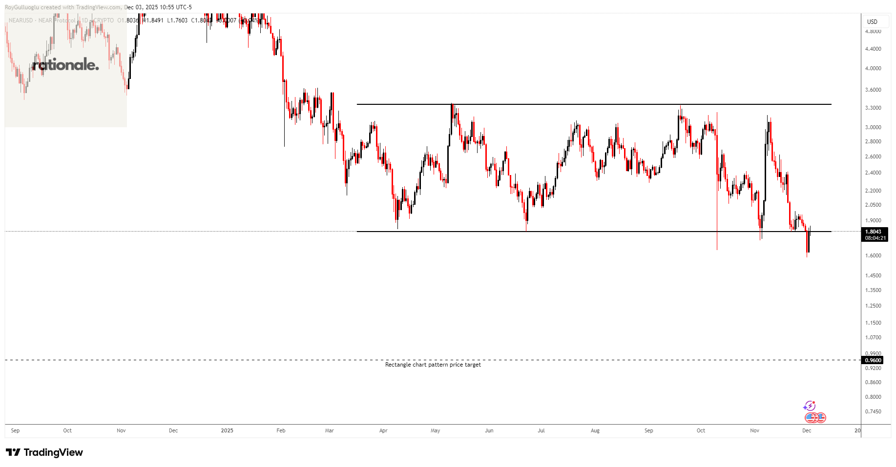 Based on this chart pattern, the potential price target is approximately 0.96 levels.
