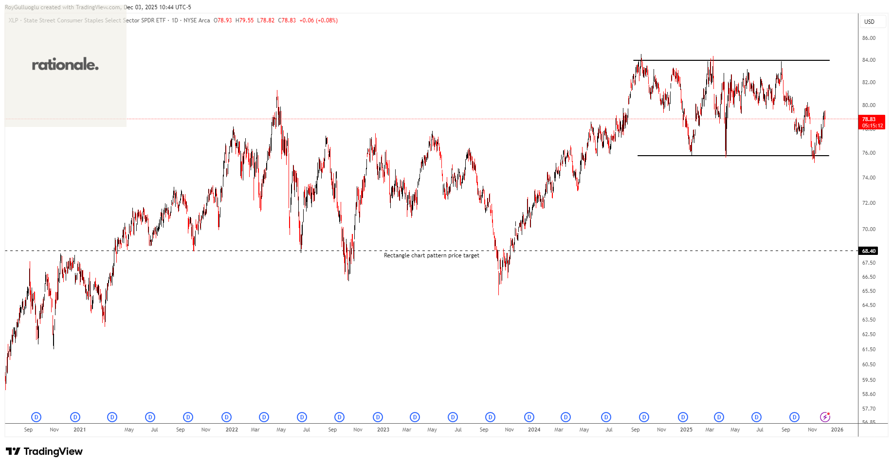 If economic conditions deteriorate or volatility rises, investors may rotate back into defensive and income-oriented ETFs like XLP. In that context shorting defensive stocks becomes a risk on bet.