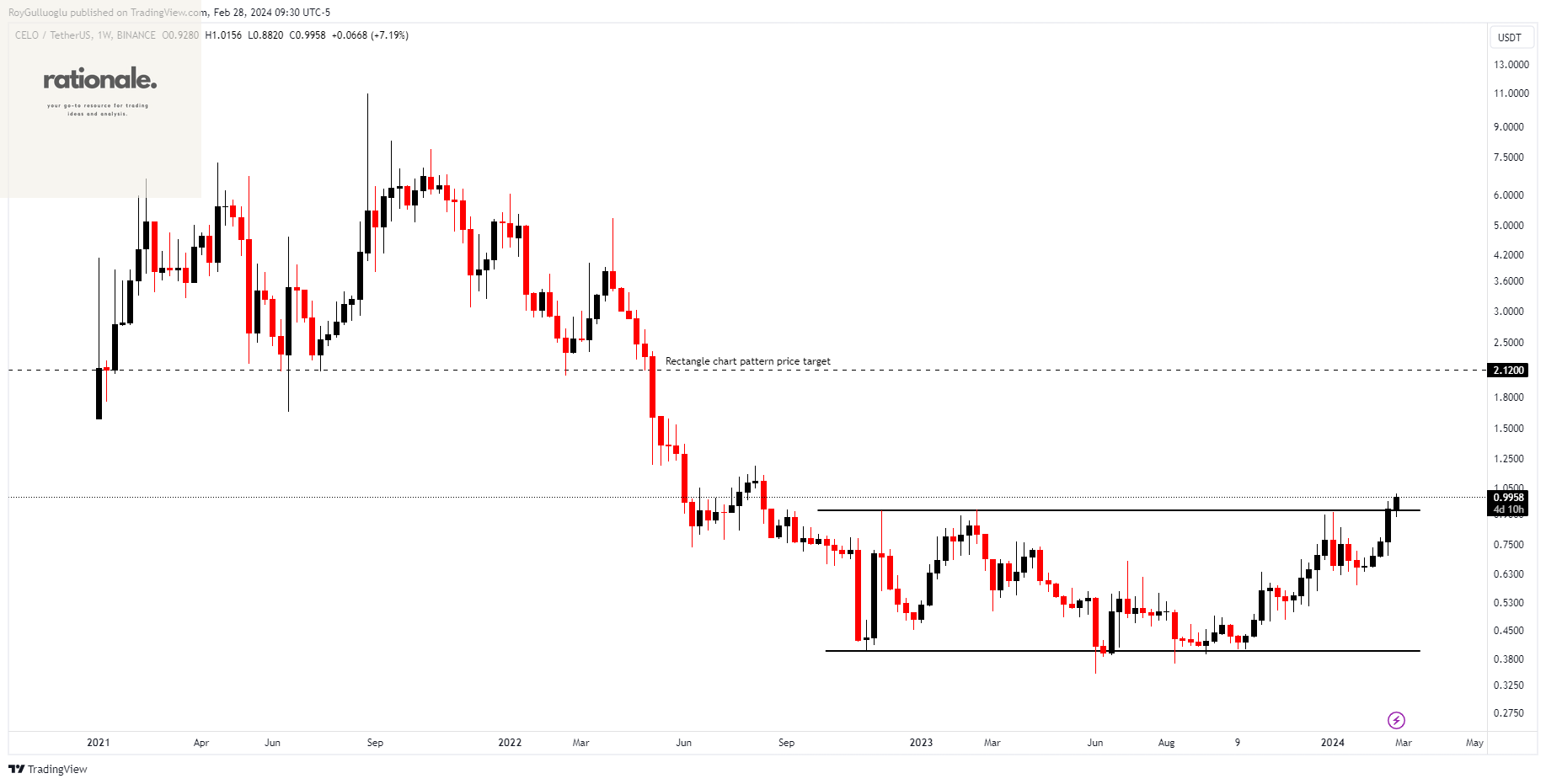 The above weekly chart formed an approximately 14-month-long rectangle chart pattern as a bullish reversal after a downtrend.