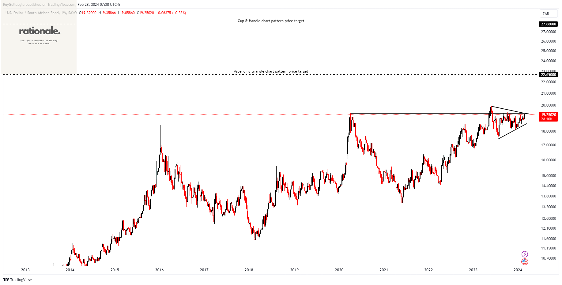 The above weekly chart formed approximately a 4-year-long Cup & Handle chart pattern where the handle part is formed as a 10-month-long ascending triangle chart pattern.