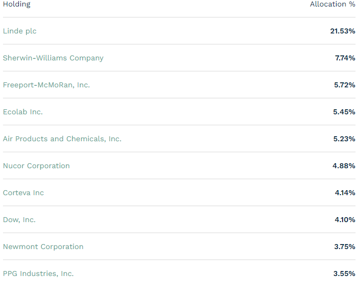 XLB follows an index where US basic materials companies are weighted based on market capitalization. The fund specifically comprises the materials components from the S&P 500.